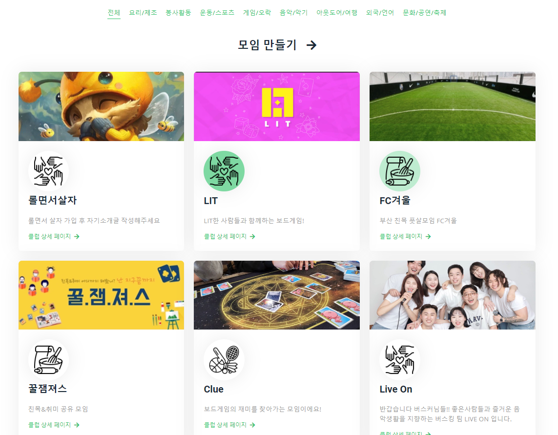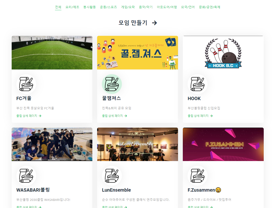 전체 클럽 리스트와 카테고리별 클럽 리스트로 구분