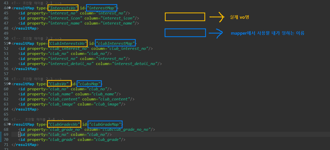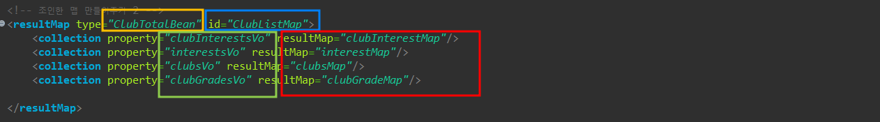 mapper에서 resultMap으로 ClubTotalBean에 넣어준 vo들을 입력해준다