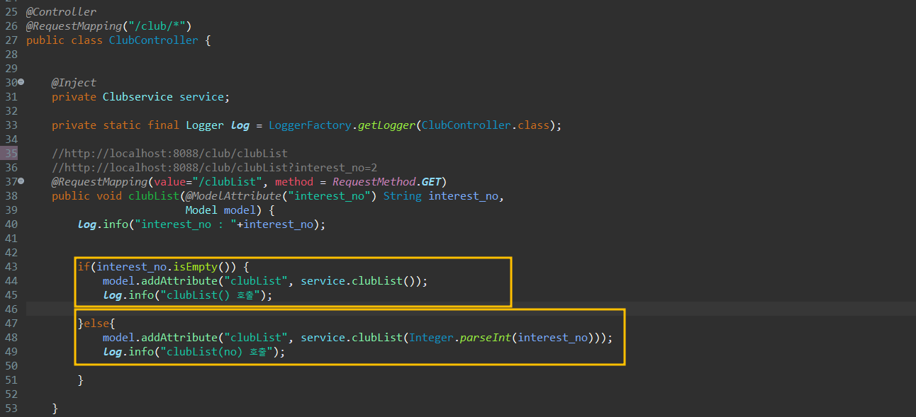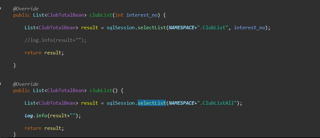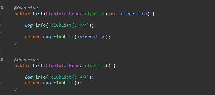 ClubDAO를 주입받은 ServiceImpl 에서 dao로 호출