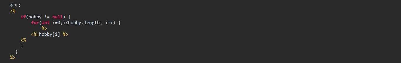출력할 때도 if문과 for 반복문을 이용해서 체크되지 않은(null)값은 출력되지 않도록 작성해줘야 한다.