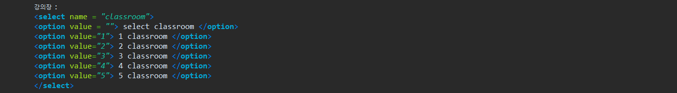사용자이름, 성별(radio), 취미(checkbox), 강의장(select)