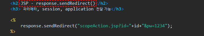 - response.sendRedirect로 파라메터, session, application 전달 가능