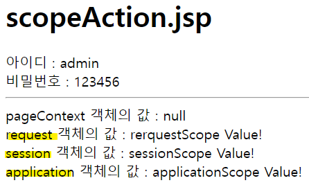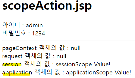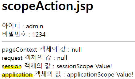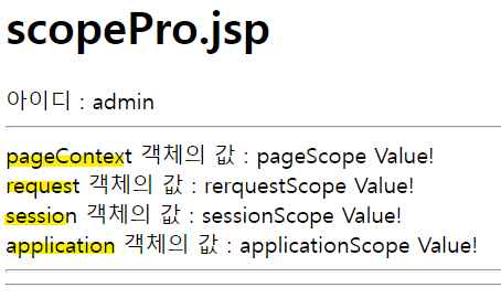- session, application, request 값이 정상적으로 출력됨