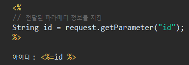 - scopeForm에서 전달된 id 파라메터 정보를 저장 & 출력