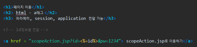 - => a태그로 페이지를 이동하면 pageContext와 request 객체의 값은 저장되지 않음
