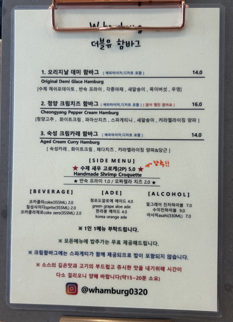 더블유함바그 가신다면 꼭 같이 시켜드시는걸 추천드립니다!!