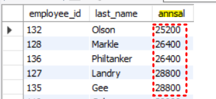 컬럼명 + 사칙연산 : 해당 계산식 대로 계산된 결과가 조회