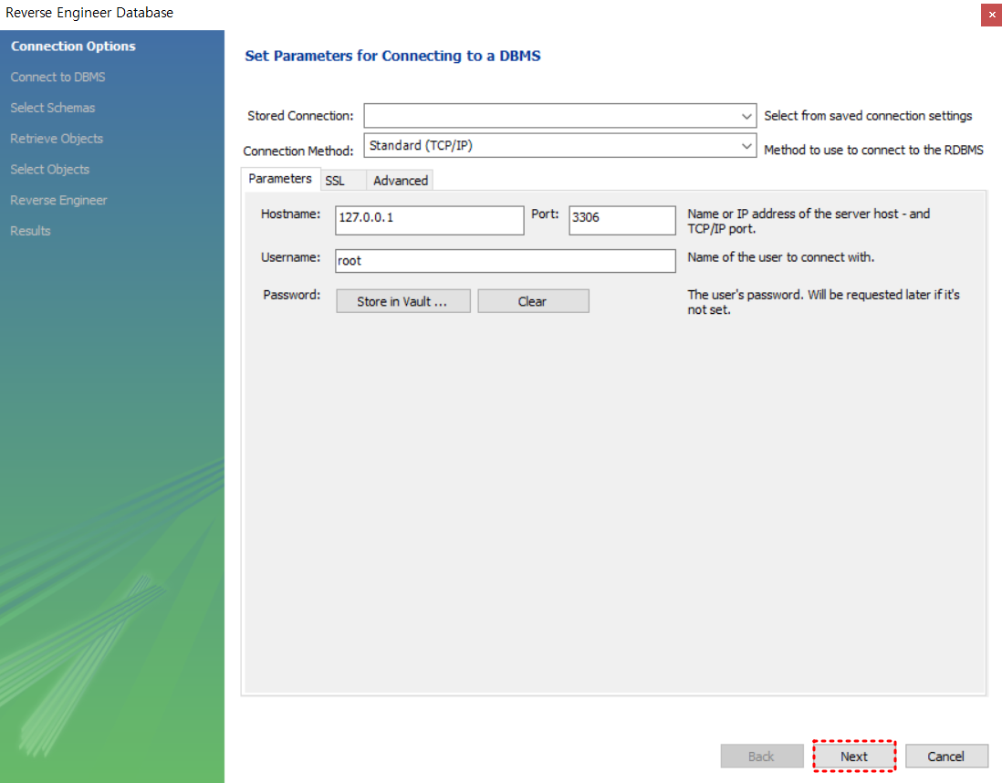 2. 접속 정보 입력 후 next
