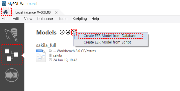 1. [Home] - [Models] - [Create EER Model from Database]