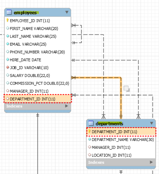 >> emloyees와 departments 테이블은 department_id 컬럼을,