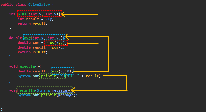 - 메소드는 클래스 내, 외부의 호출에 의해 실행된다.