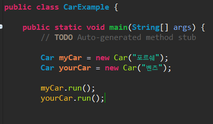 * 인스턴스 멤버 : 객체를 생성한 후 사용할 수 있는 필드 & 메소드