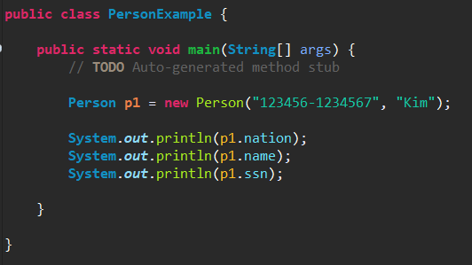 ⓒ 정적 필드도 private 접근제한자를 붙여 외부에서 필드값을 변경하지 못하도록 함