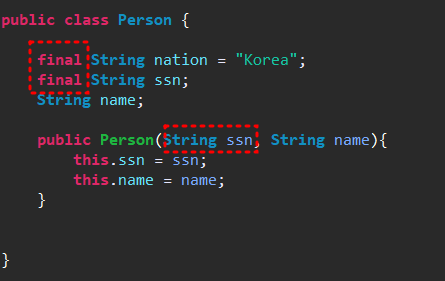 final 필드는 초기값이 지정되면 최종적인 값이 되어서 더이상 변경할 수 x