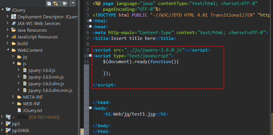 ex) ~~~~ /WebContent/jq/test1.jsp