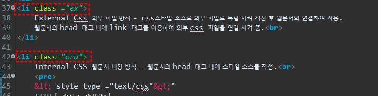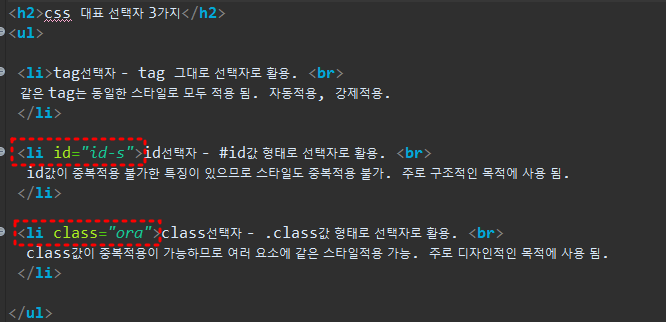 li 태그에 각각 id와 class 태그로 구분해준 뒤,
