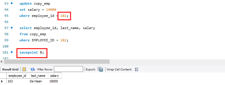 ⓑ 102번 사원 salary 변경 & savepoint B생성