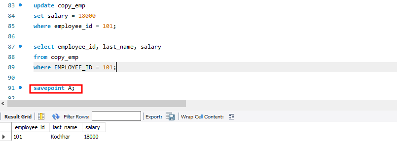 ⓐ 101번 사원 salary 변경 & savepoint A생성