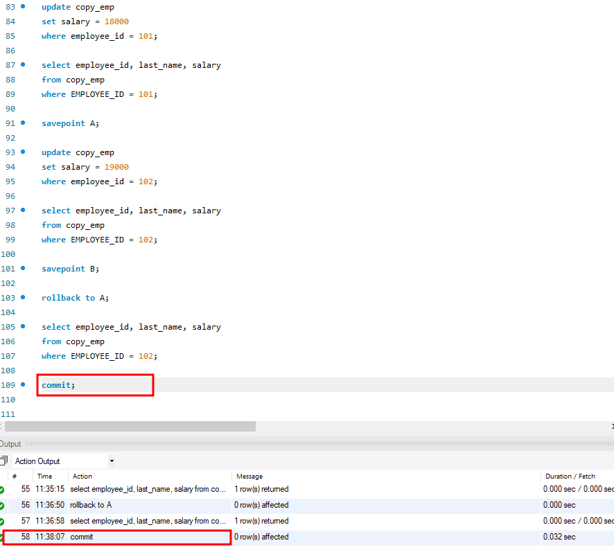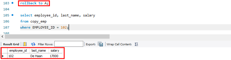 ⓒ 102번 사원 salary 변경 취소 -------> A로 rollback