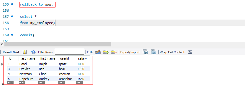※ MY_EMPLOYEE 테이블에 대한 데이터 트랜잭션을 제어