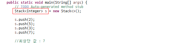 -> 이 메서드를 호출하기 위해서는 Stack<E>타입으로 선언
