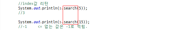 5. s.search(Object o) : index값 리턴
