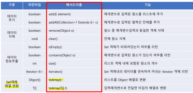 2. Set 컬렉션 인터페이스 method
