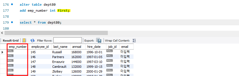 * 제일 앞에 컬럼 추가하기