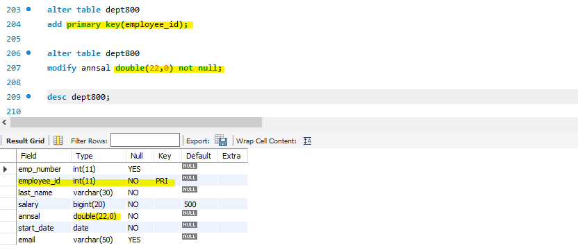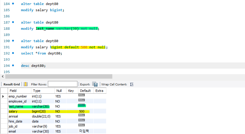 alter table 테이블명 modify ----;