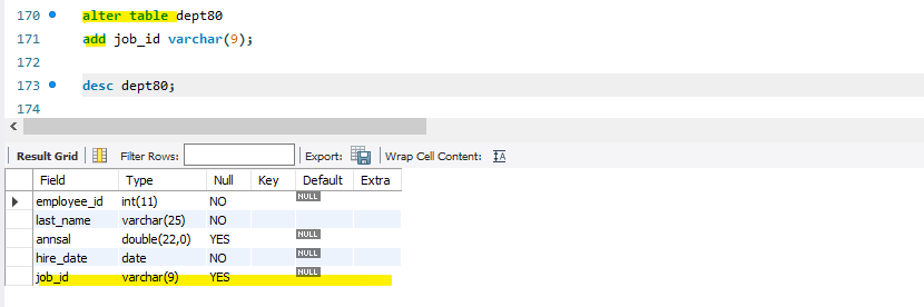 : 가장 마지막에 추가, dafault값이 null로 지정됨