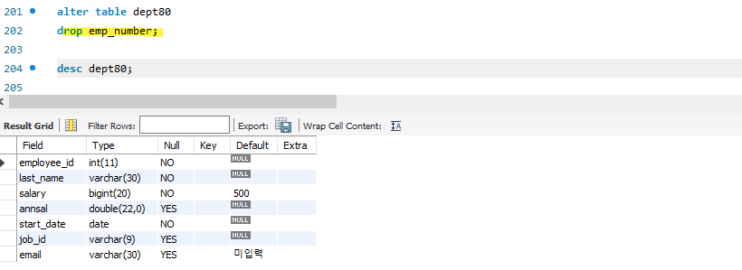 3) 컬럼 삭제