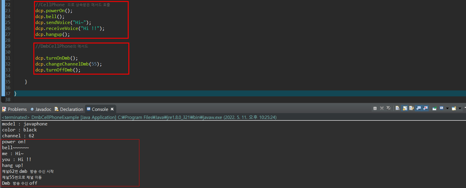3-4. DmbCellPhone 으로 상속받은 메서드 호출