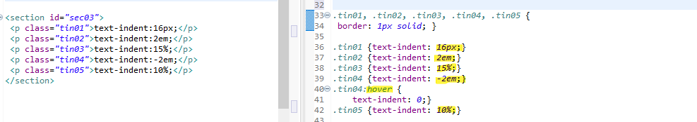 text-indent: 양수,음수,%,em