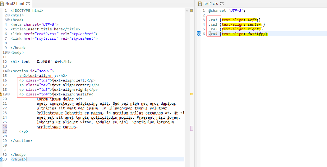 text-align: justify; : 양쪽정렬