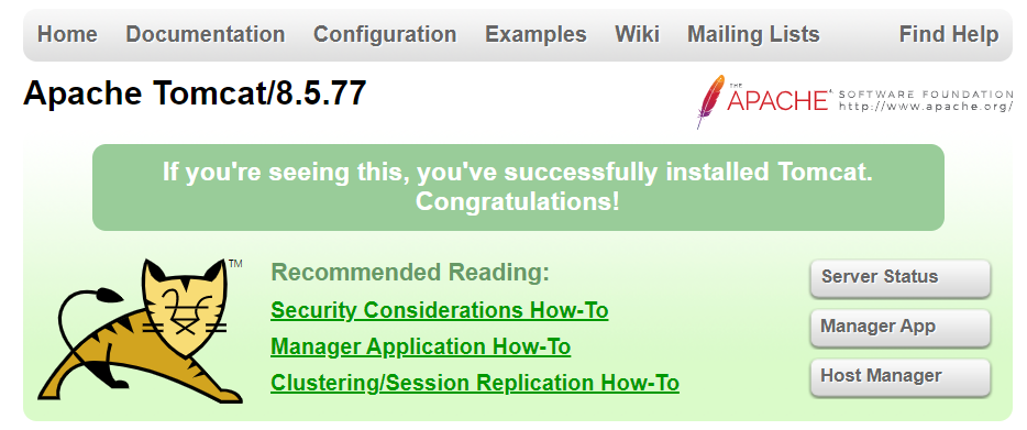 두번째 그림과 같이 tomcat이 나오면 설치가 완료 되었습니다.
