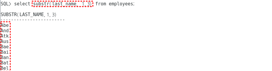 3. substr로 last_name의 첫번째 글자부터 3번째 글자까지 추출