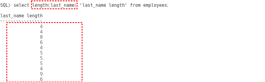 4. length로 last_name의 길이 반환