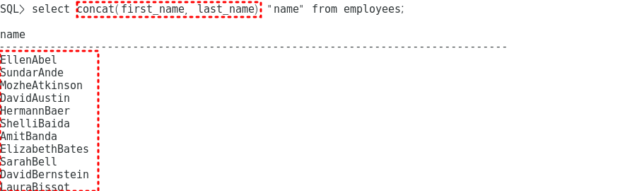 2. concat으로 first_name 과 last_name 연결