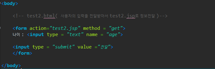 test2. html 에서 사용자의 입력을 전달받아서 test2.jsp로 정보 전달