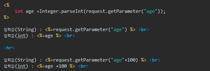 전달받은 age가 String 타입이므로 int로 형변환 해줌
